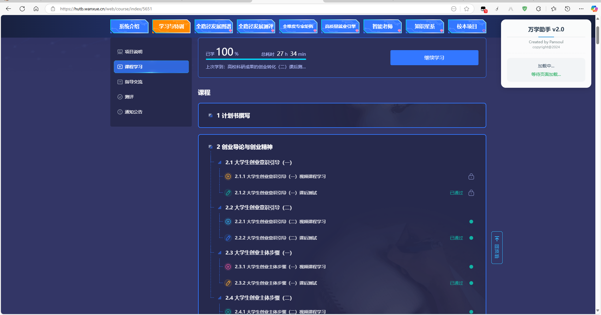 打开万学网即可看到助手面板 注:一定从视频任务开始!!!!